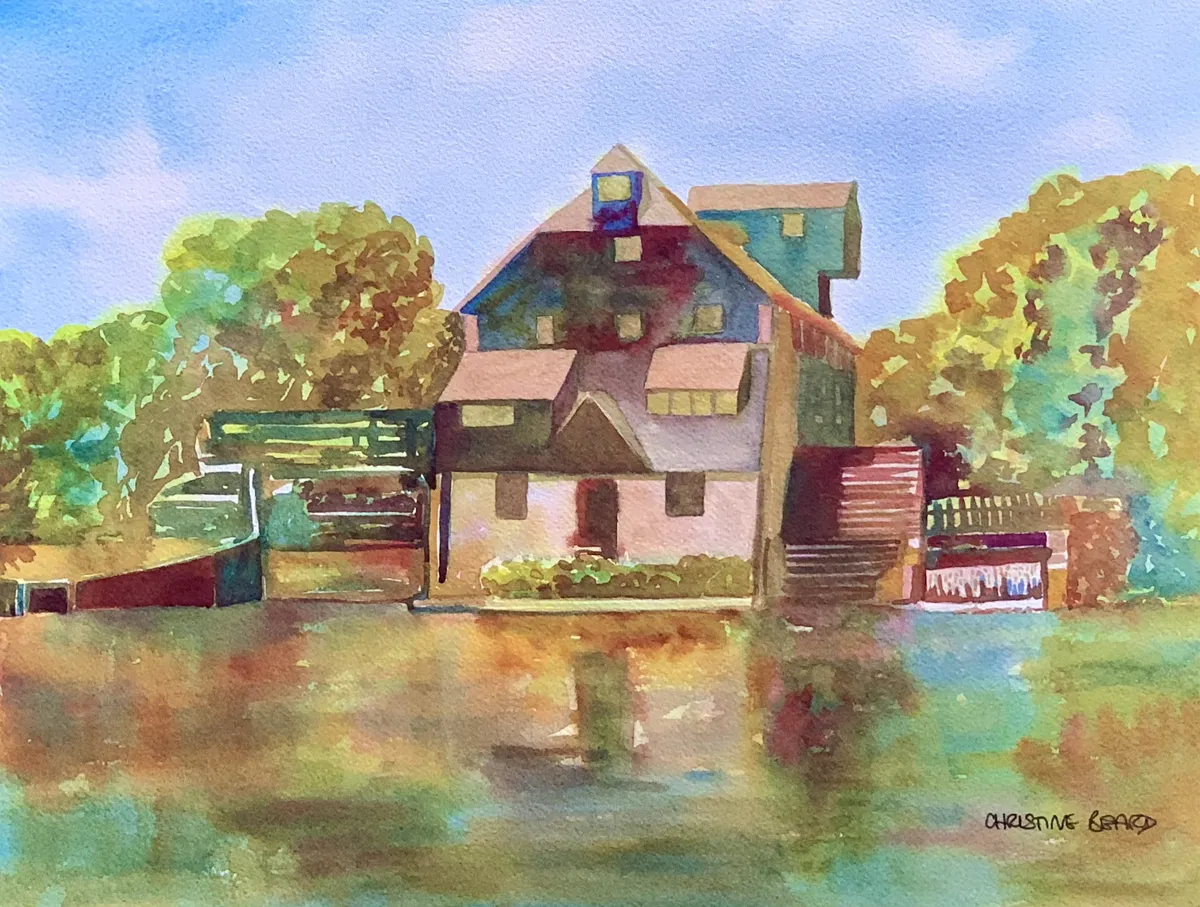 Millpond and Water Wheel By Christine Beard 2024 Watercolour On Paper 41 cm W x 31 cm H.jpg