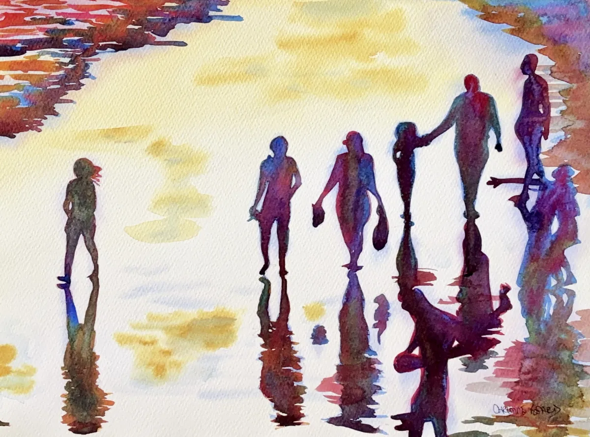 Evening Stroll Along The Shore By Christine Beard 2024 Watercolour On Paper 41 cm W x 31 cm H.jpg