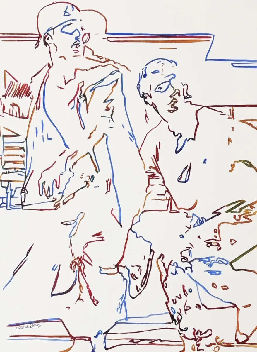 Sidewalk Conversation By Christine Beard 2025 Watercolour On Paper 31 cm W x 41 cm H