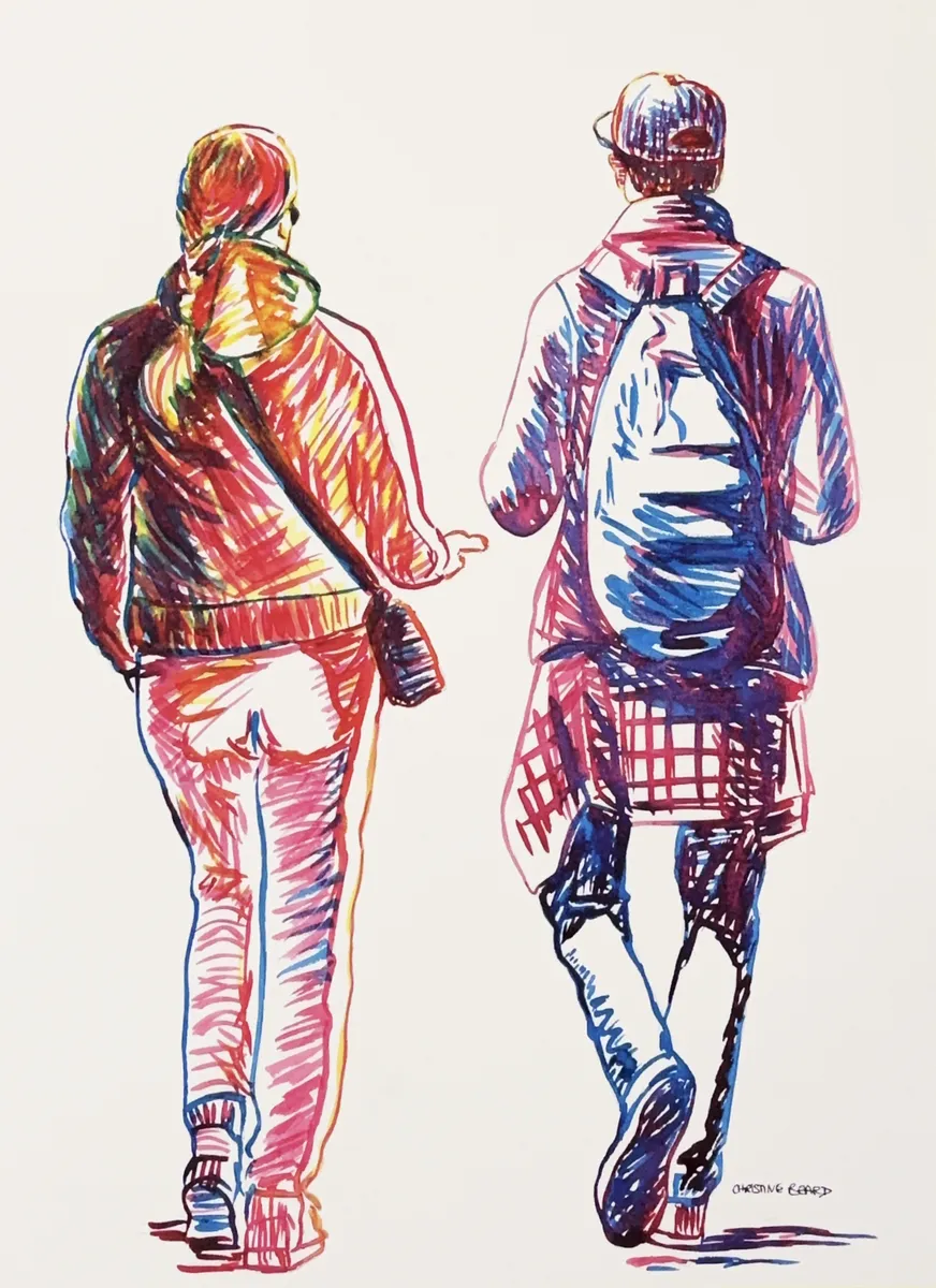 Sidewalk Conversation By Christine Beard 2025 Watercolour On Paper 31 cm W x 41 cm H