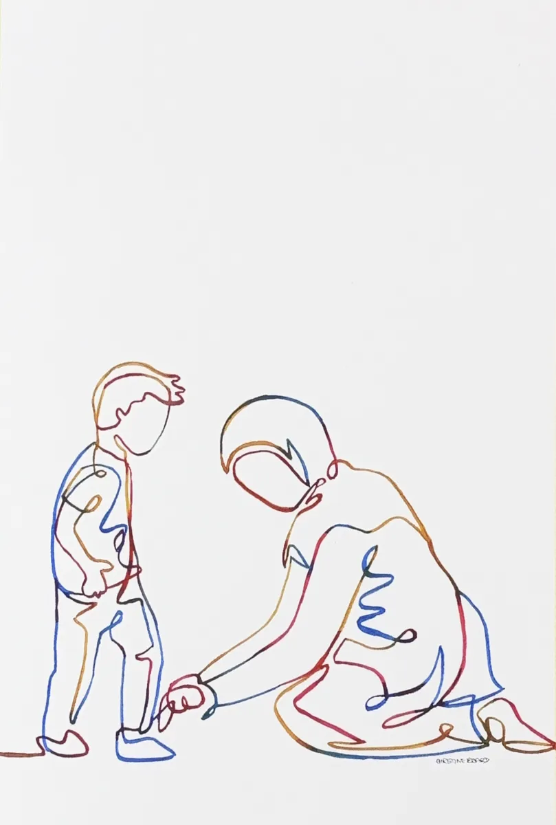 Tying Laces By Christine Beard 2025 Watercolour On Paper 41 cm W x 31 cm H.jpg