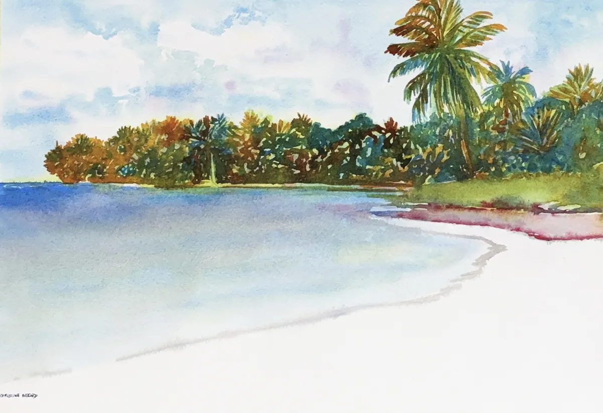 Shoreline Palm Tree Fringe By Christine Beard 2025 Watercolour On Paper 41 cm W x 31 cm H.jpg