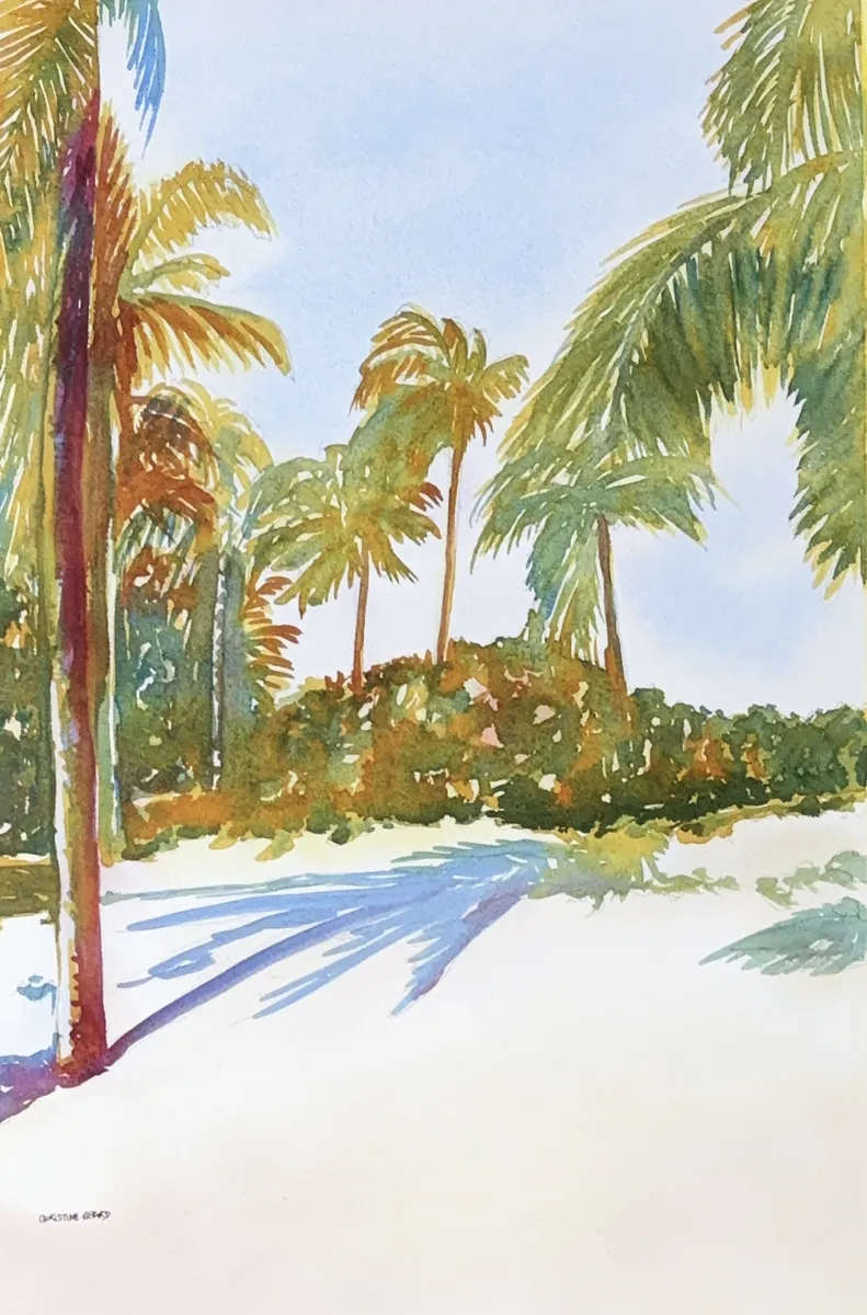 Palm Shadows By Christine Beard 2025 Watercolour On Paper 31 cm W x 41 cm H.jpg