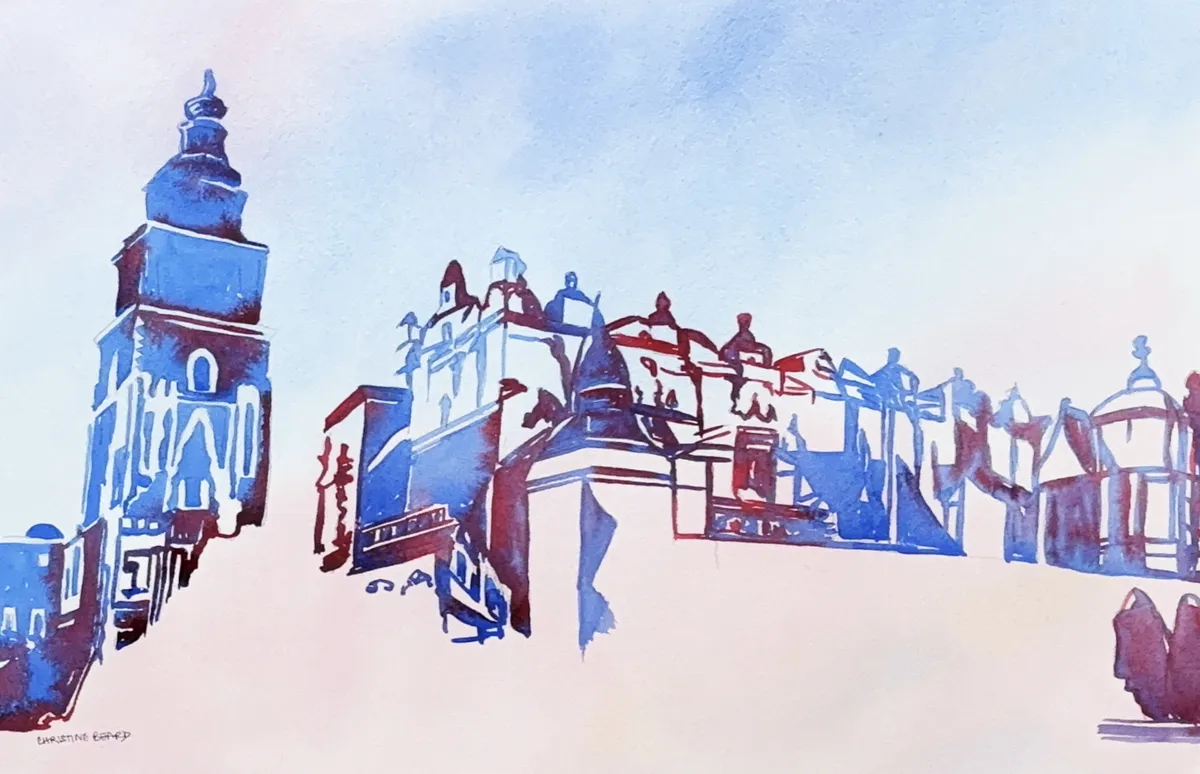 Blue Hour Skyline By Christine Beard 2025 Watercolour On Paper 41 cm W x 31 cm H.jpg