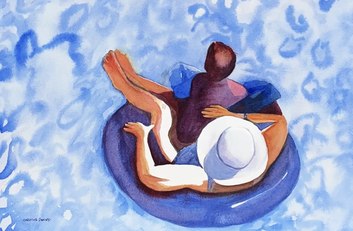 Floaties & Chill By Christine Beard 2025 Watercolour On Paper 41 cm W x 31 cm H.jpg
