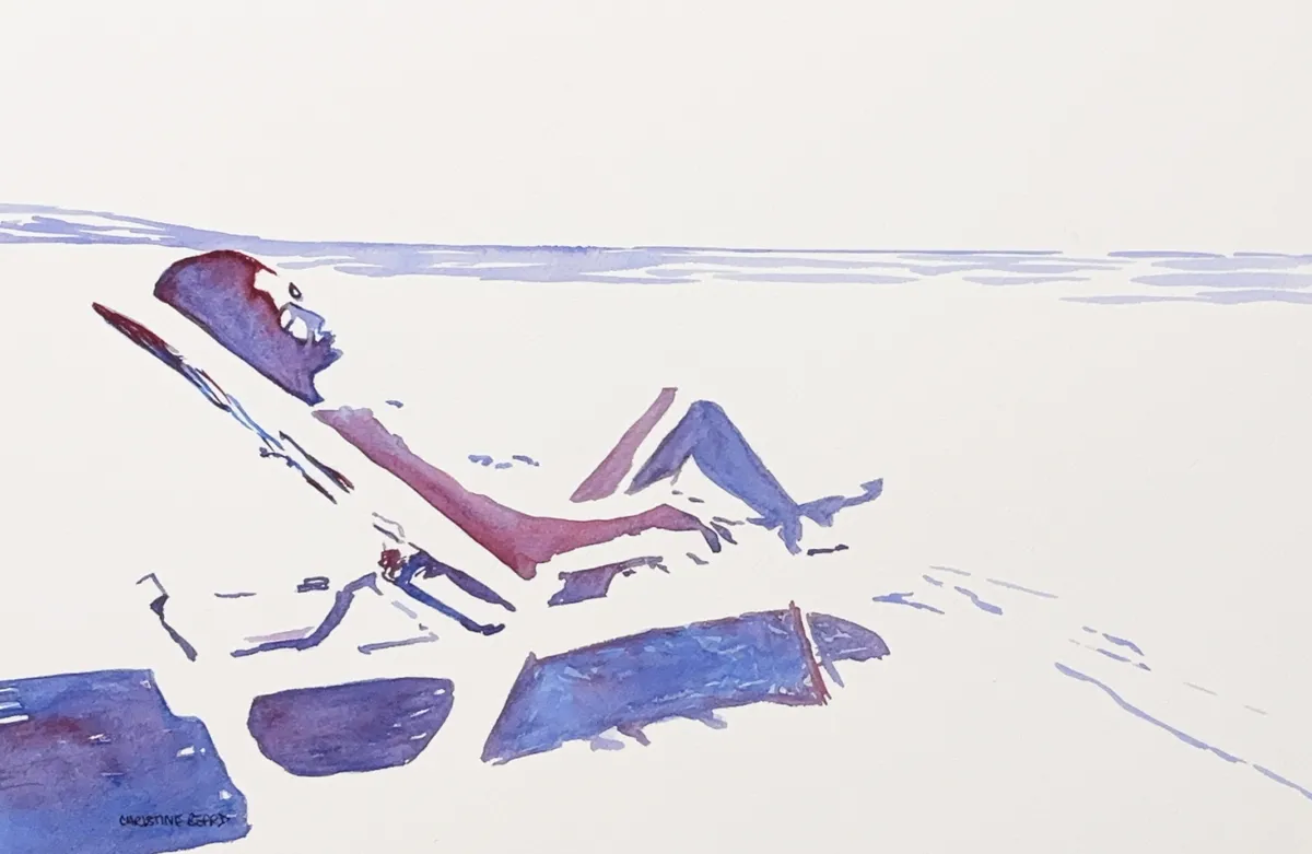 Sun Lounger Olympics By Christine Beard 2025 Watercolour On Paper 41 cm W x 31 cm H.jpg