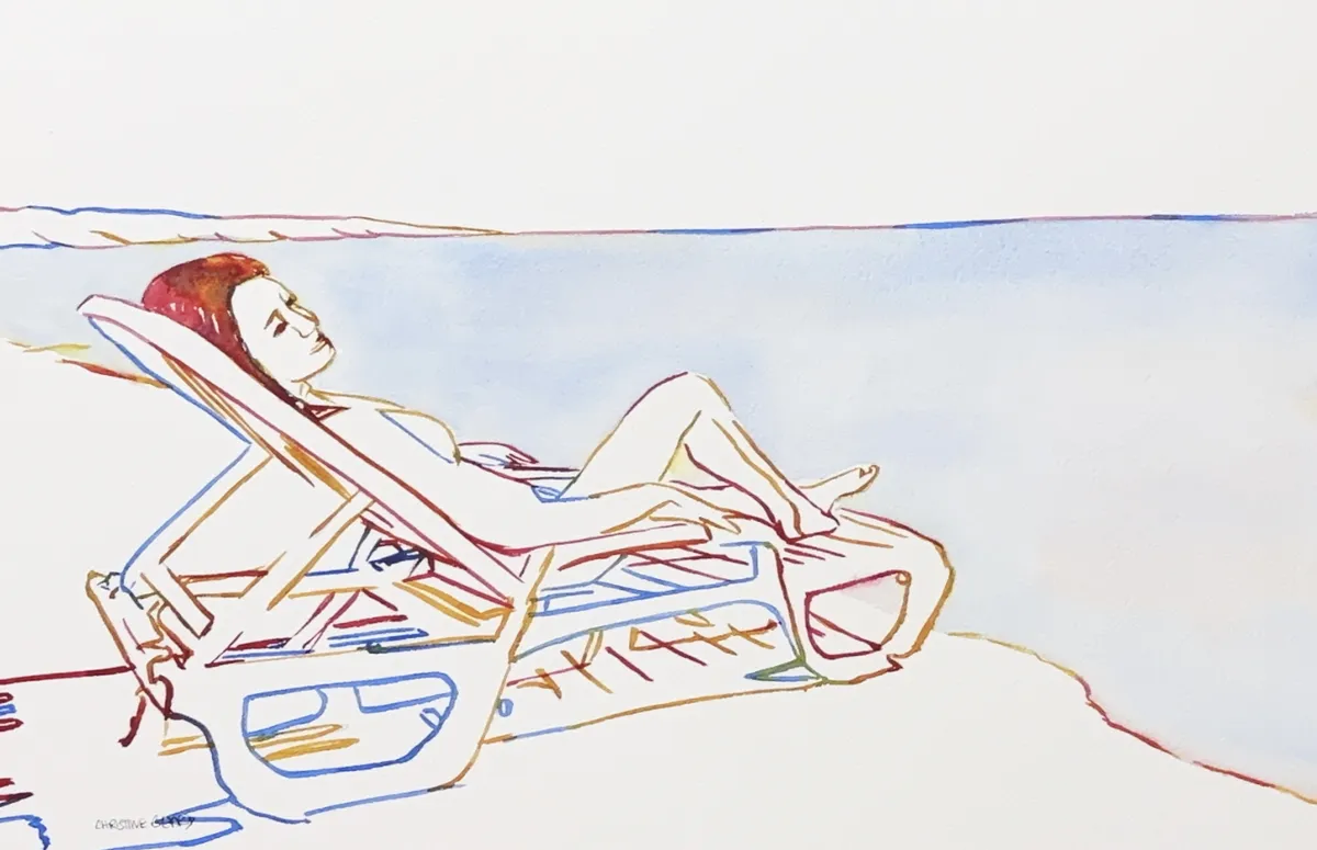 Sun Lounger Olympics By Christine Beard 2025 Watercolour On Paper 41 cm W x 31 cm H.jpg