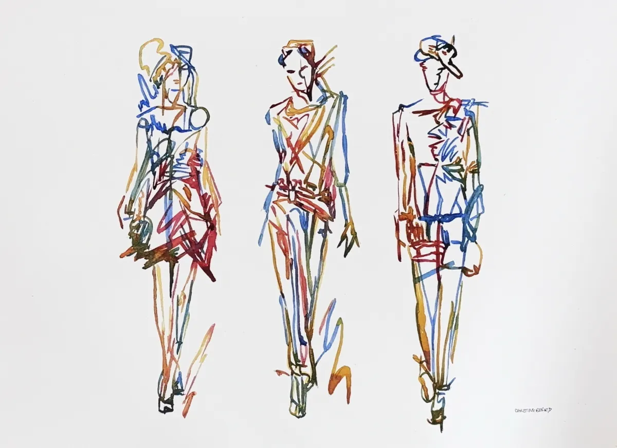 Chromatic Catwalk By Christine Beard 2025 Watercolour On Paper 41 cm W x 31 cm H.jpg