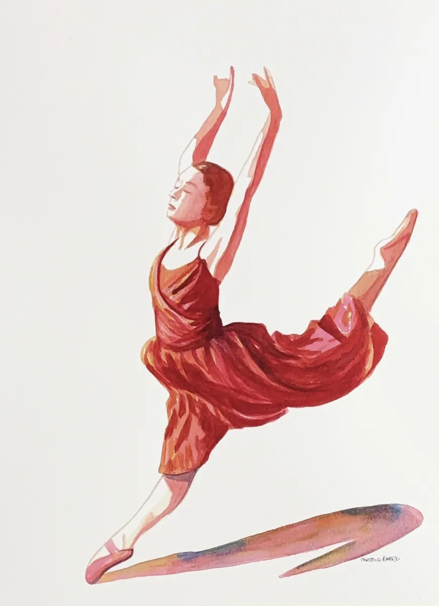 Crimson Leap By Christine Beard 2025 Watercolour On Paper 31 cm W x 41 cm H.jpg