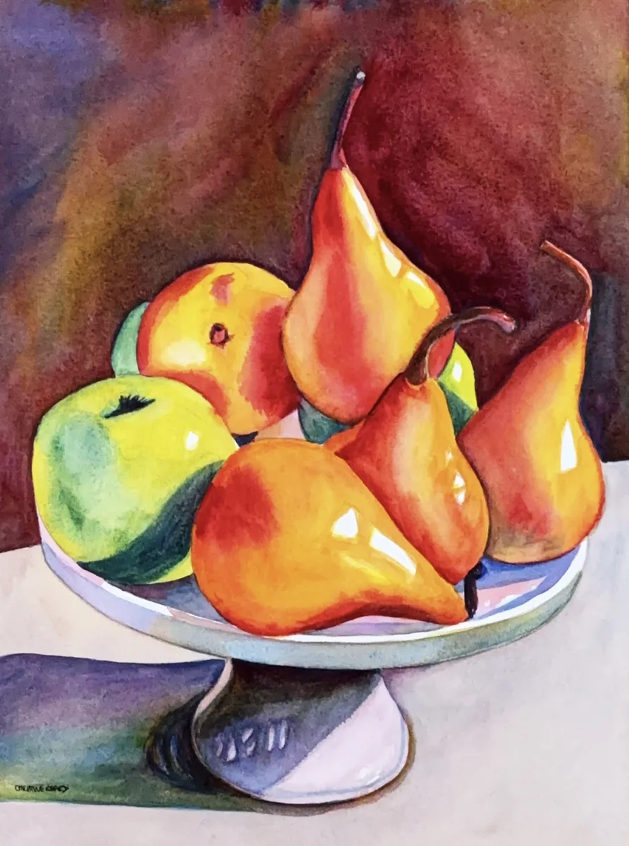 Gilded Pears By Christine Beard 2025 Watercolour On Paper 31 cm W x 41 cm H.jpg