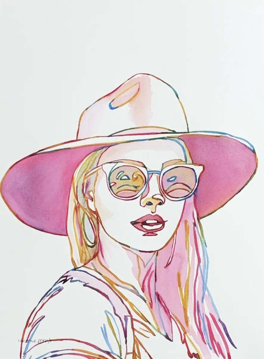 Under the Wide Brim By Christine Beard 2025 Watercolour On Paper 31 cm W x 41 cm H.jpg