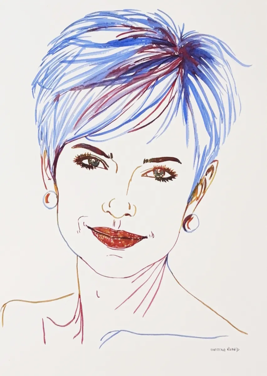 Azure Pixie, Ruby Smile By Christine Beard 2025 Watercolour On Paper 31 cm W x 41 cm H.jpg