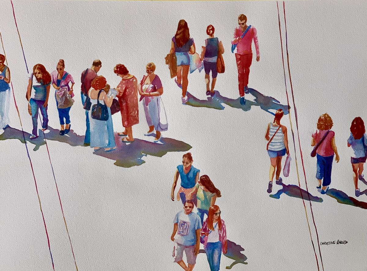 A Multi Coloured Crowd Christine Beard 2023 Watercolour On Paper 61 cm W x 46 cm H