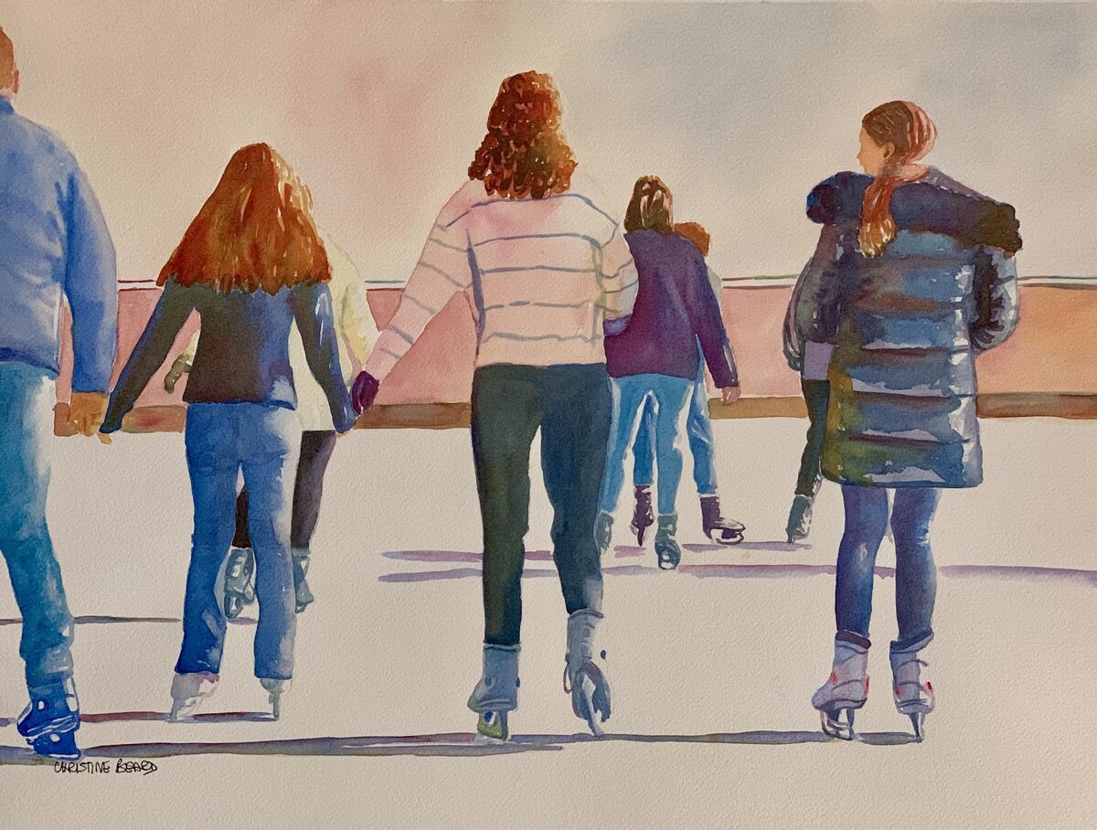 Skating Party Christine Beard 2023 Watercolour On Paper 61 cm W x 46 cm H
