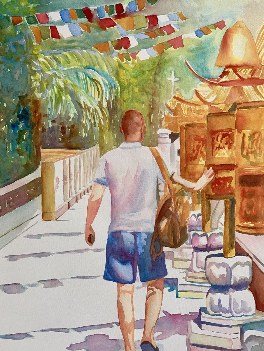 Prayer Wheels Christine Beard 2023 Watercolour On Paper 46 cm W x 61 cm H