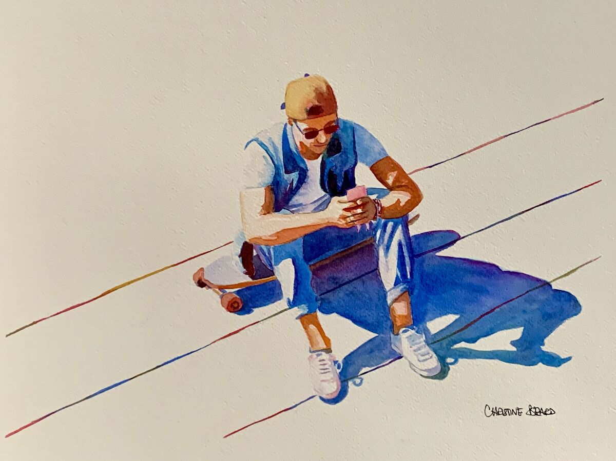 Posting To Tik Tok Christine Beard 2023 Watercolour On Paper 41 cm W x 31 cm H