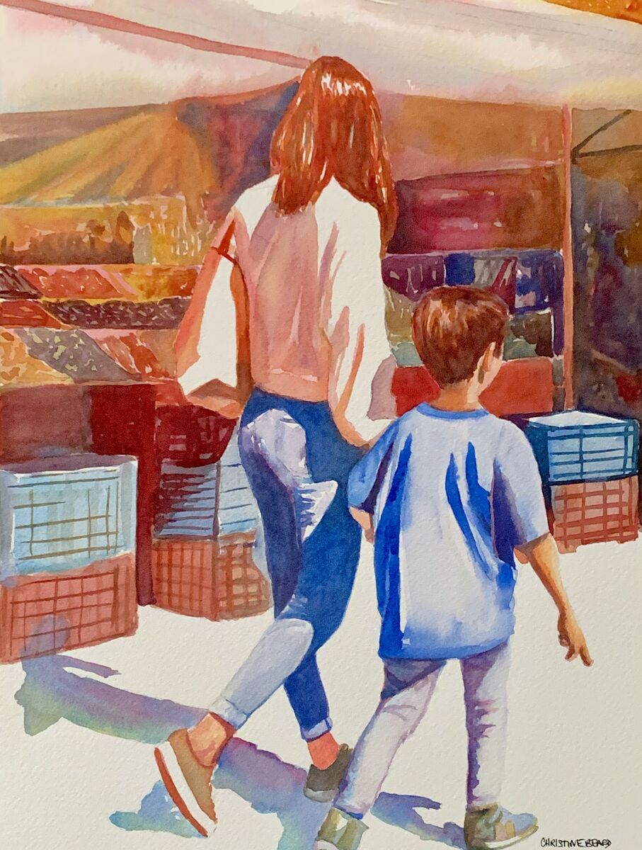 At The Market Christine Beard 2023 Watercolour On Paper 31 cm W x 41 cm H