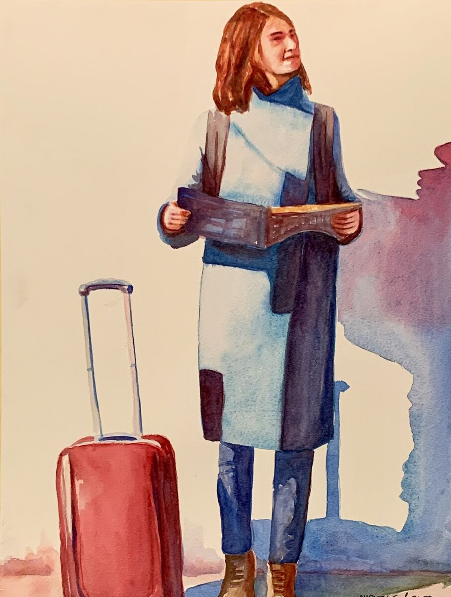 Waiting For A Lift Christine Beard 2023 Watercolour On Paper 31 cm W x 41 cm H