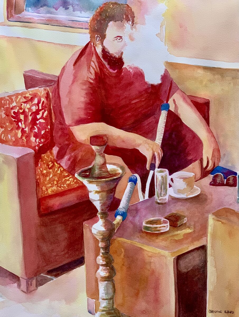 Hubble Bubble Pipe Christine Beard 2023 Watercolour On Paper 46 cm W x 61 cm H