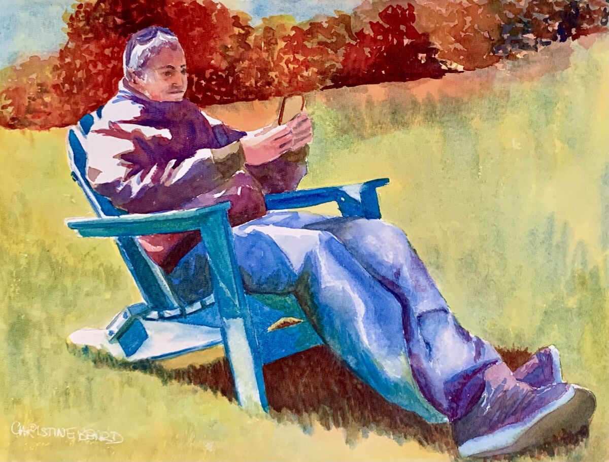 Sunlit Scrolling. A Moment of Connected Isolation Christine Beard 2023 Watercolour On Paper 41 cm W x 31 cm H