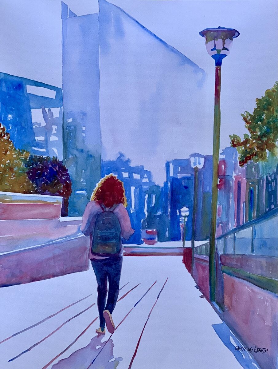 Campus Bound Christine Beard 2023 Watercolour On Paper 46 cm W x 61 cm H