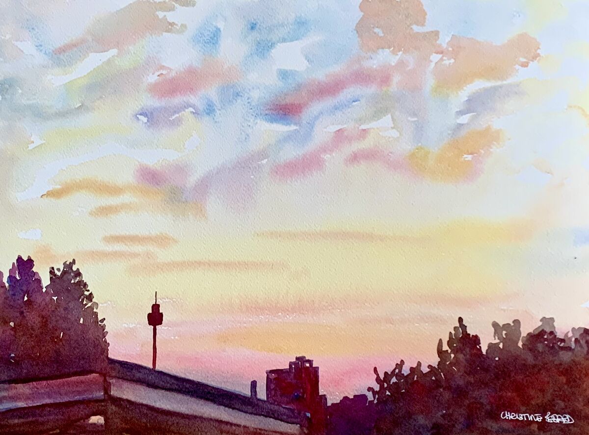Sunrise Over Sydney Christine Beard 2023 Watercolour On Paper 41 cm W x 31 cm H
