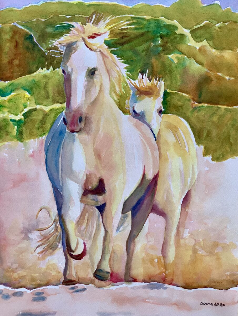 Spirited Camargue Companions Christine Beard 2023 Watercolour On Paper 46 cm W x 61 cm H