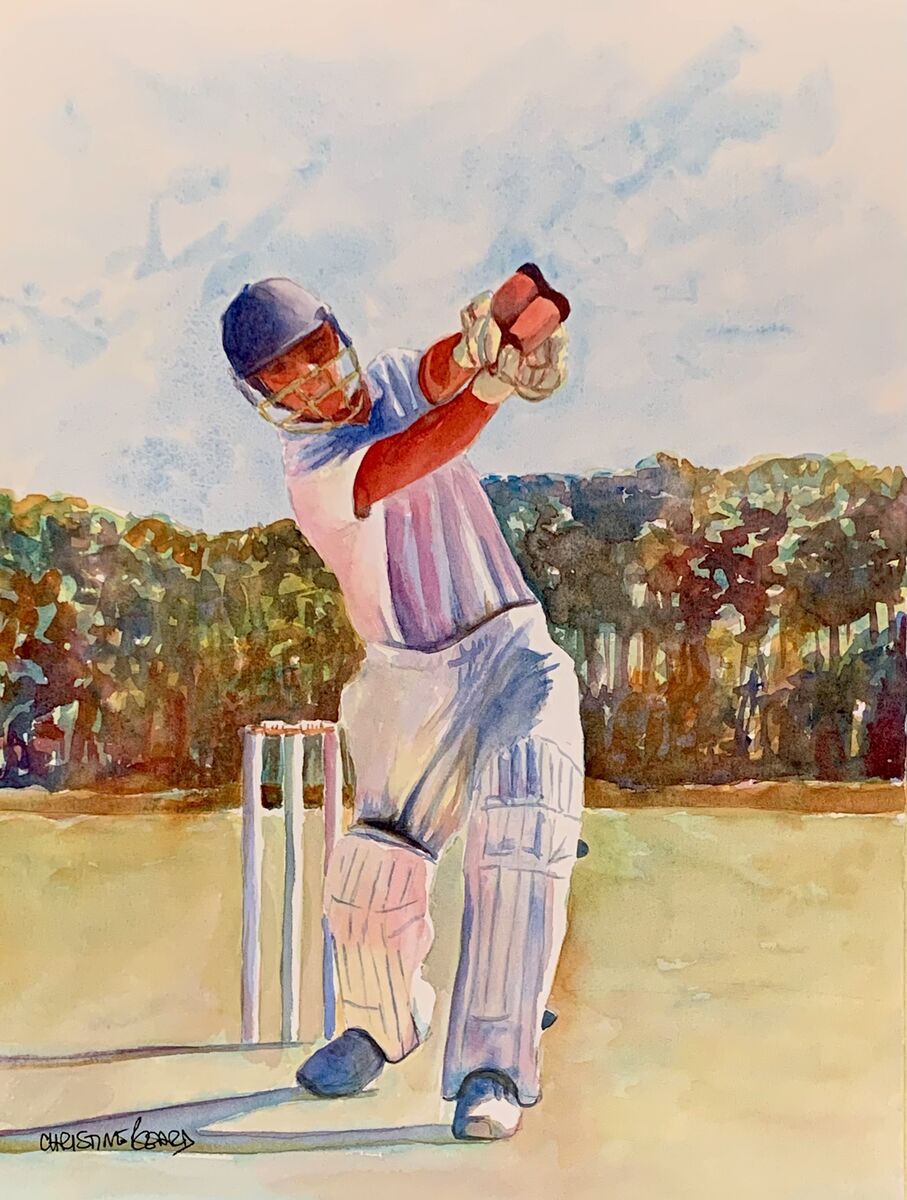 The Art Of Batting By Christine Beard 2023 Watercolour On Paper 31 cm W x 41 cm H