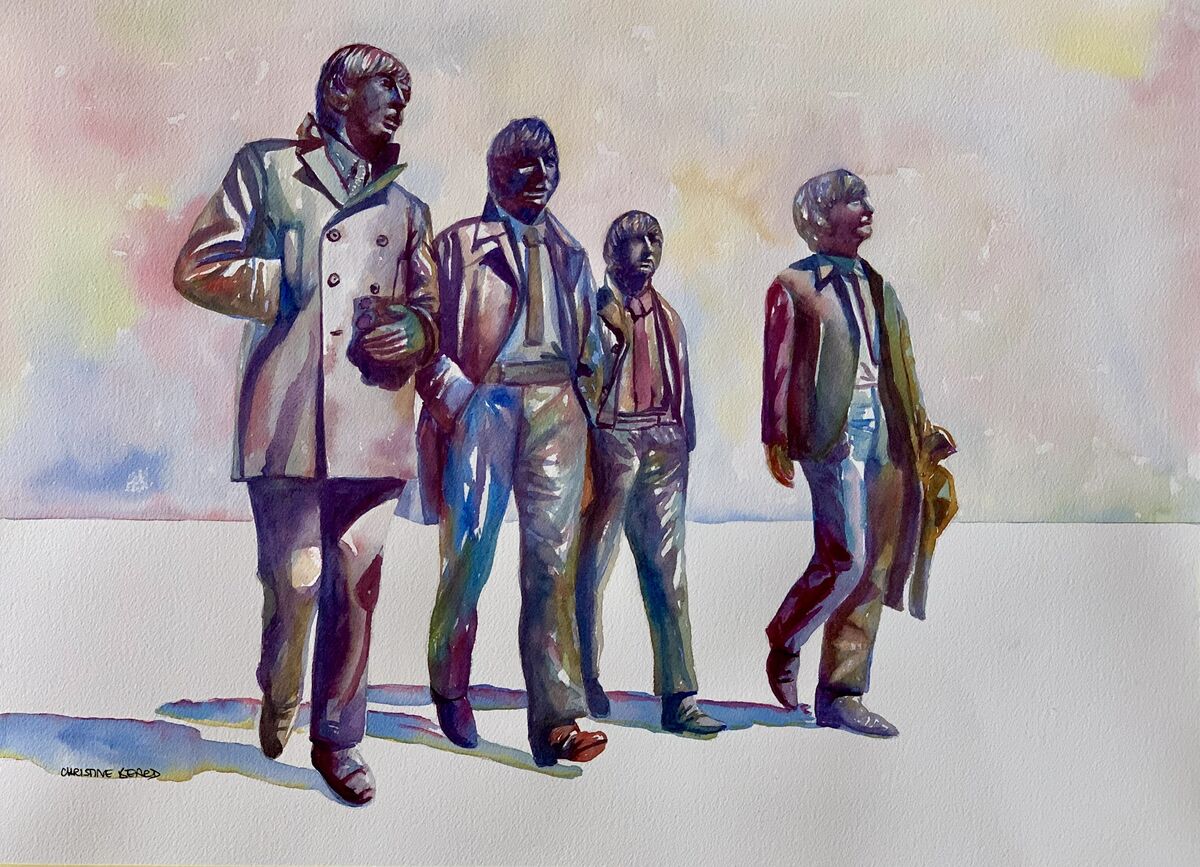 Beatles In Bronze by Christine Beard 2023 Watercolour On Paper 61 cm W x 46 cm H