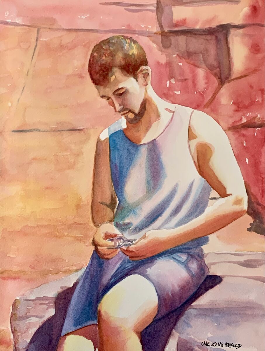 Thoughtful Repose By Christine Beard 2023 Watercolour On Paper 31 cm W x 41 cm H