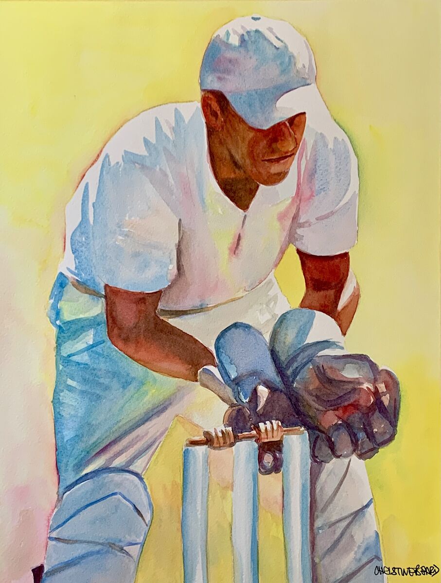 Wicket Keepers Vigilance By Christine Beard 2023 Watercolour On Paper 31 cm W x 41 cm H