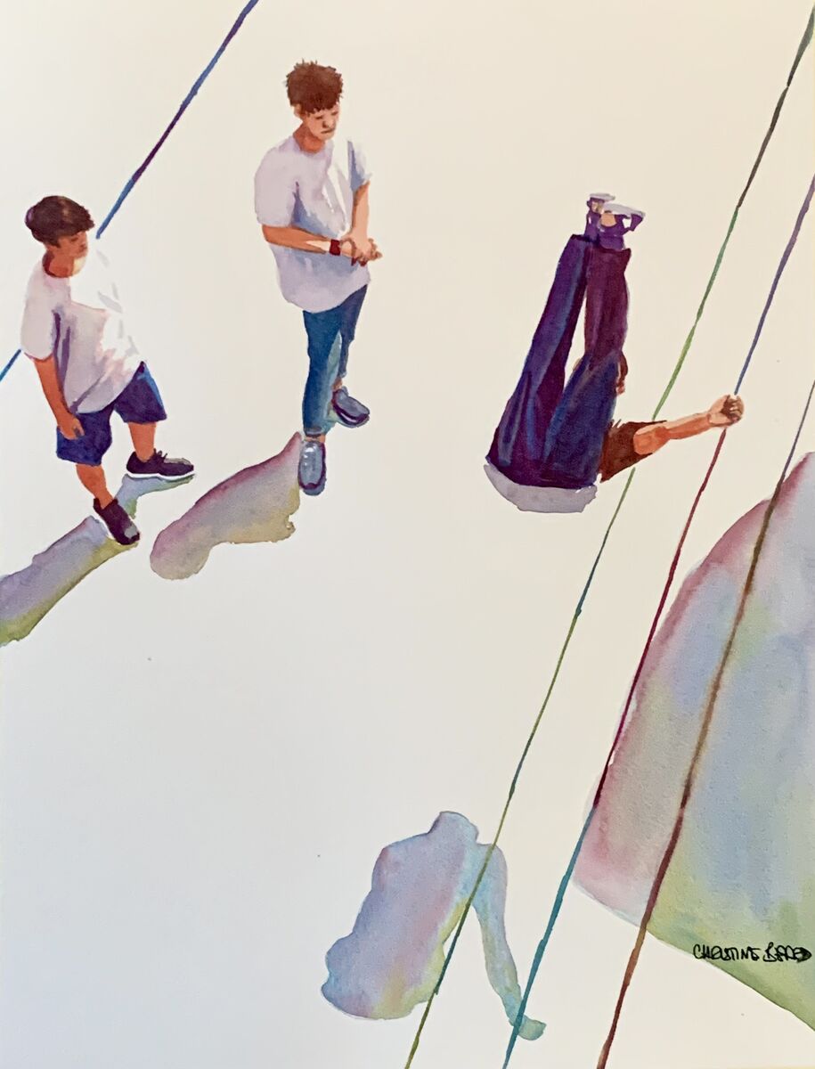 Giggles On The Sand by Christine Beard 2023 Watercolour On Paper 61 cm W x 46 cm H (1)