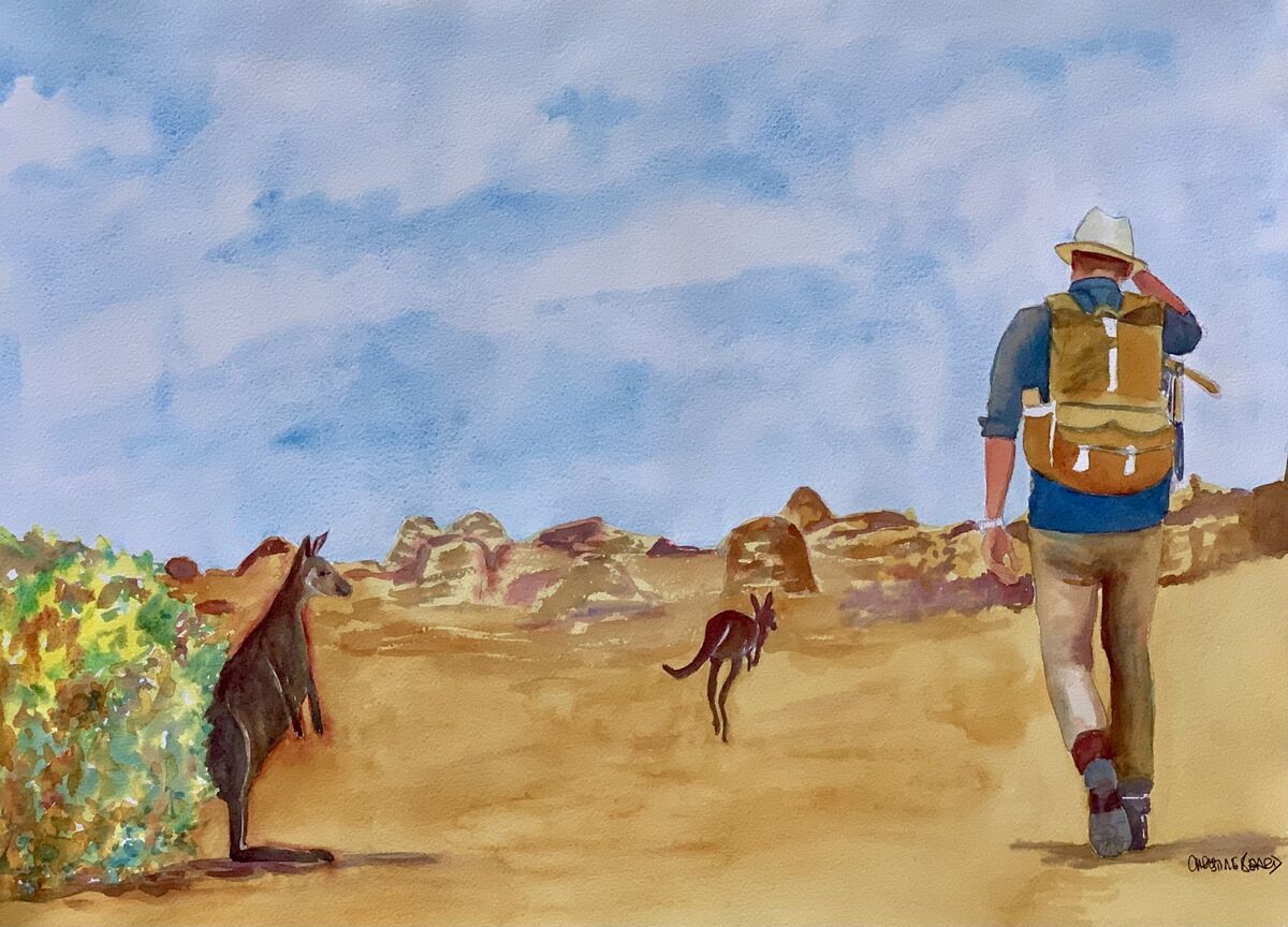 Red Dust And Roos by Christine Beard 2023 Watercolour On Paper 61 cm W x 46 cm H