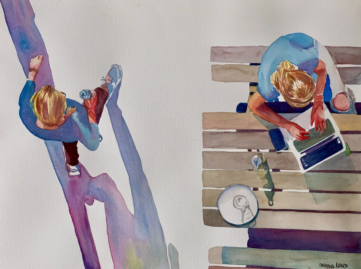 Work and Workout by Christine Beard 2023 Watercolour On Paper 61 cm W x 46 cm H