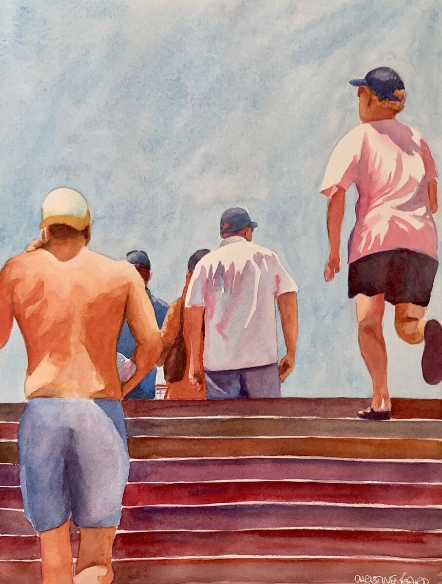 Group Stair Climb By Christine Beard 2023 Watercolour On Paper 31 cm W x 41 cm H