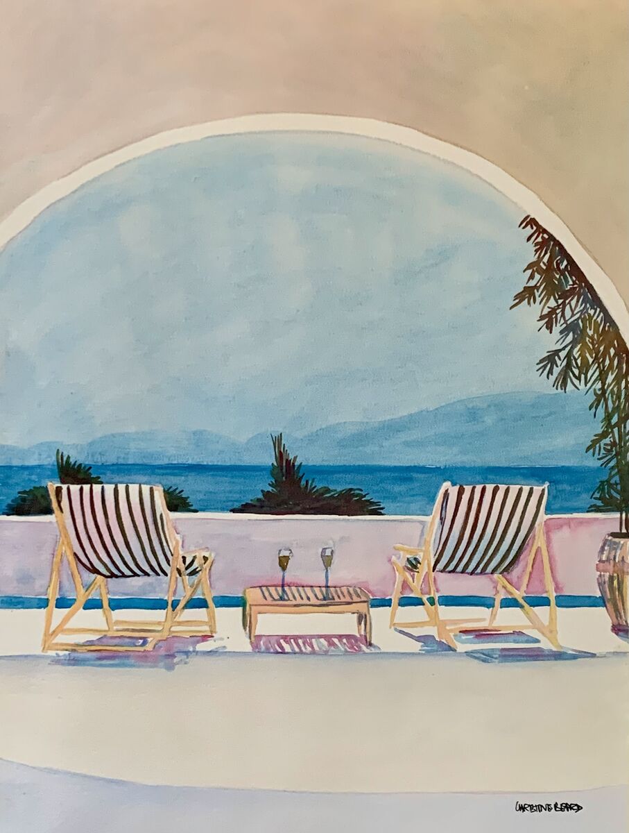 Wine On The Terrace By Christine Beard 2023 Watercolour On Paper 31 cm W x 41 cm H