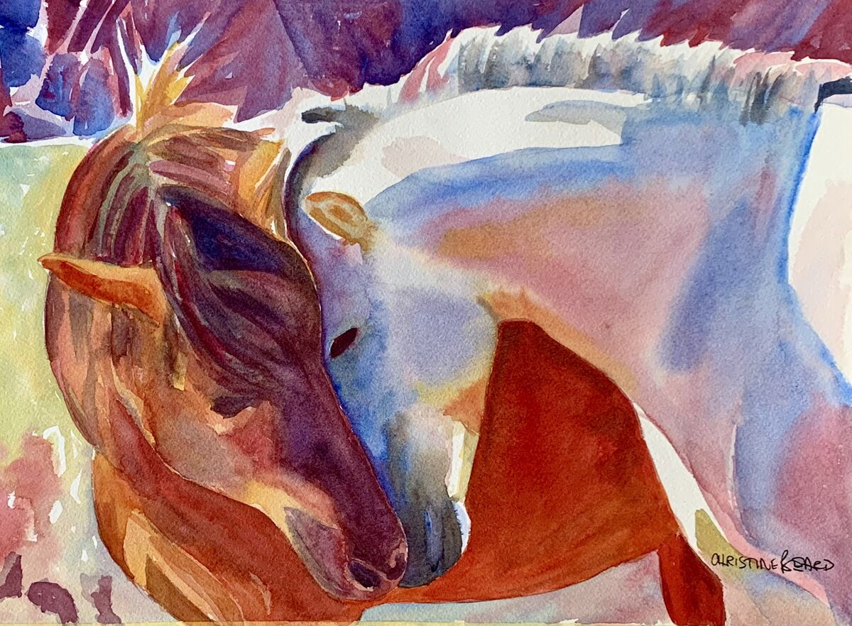 Nuzzling Friendship By Christine Beard 2023 Watercolour On Paper 41 cm W x 31 cm H