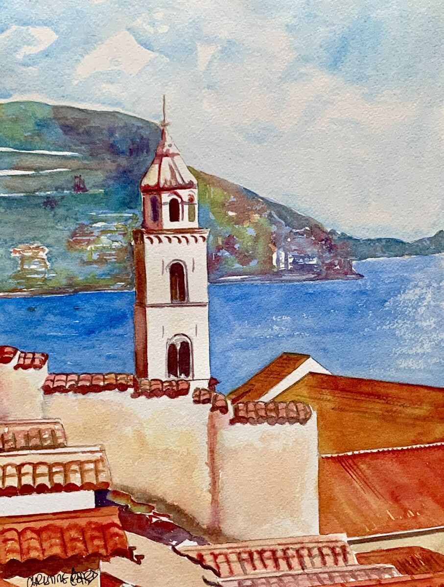 Steeple Above The Sea By Christine Beard 2023 Watercolour On Paper 31 cm W x 41 cm H
