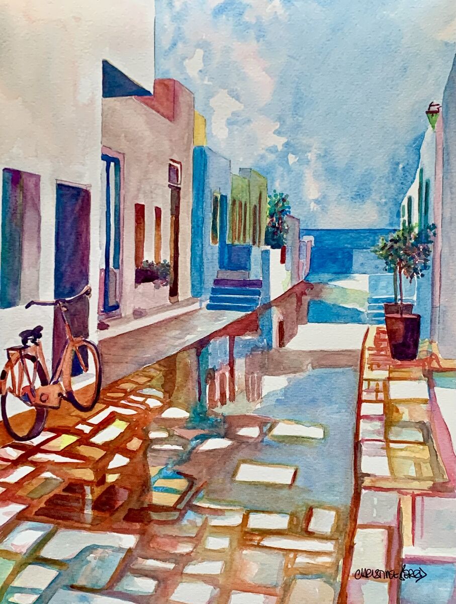 Hellenic Rainy Day By Christine Beard 2023 Watercolour On Paper 31 cm W x 41 cm H