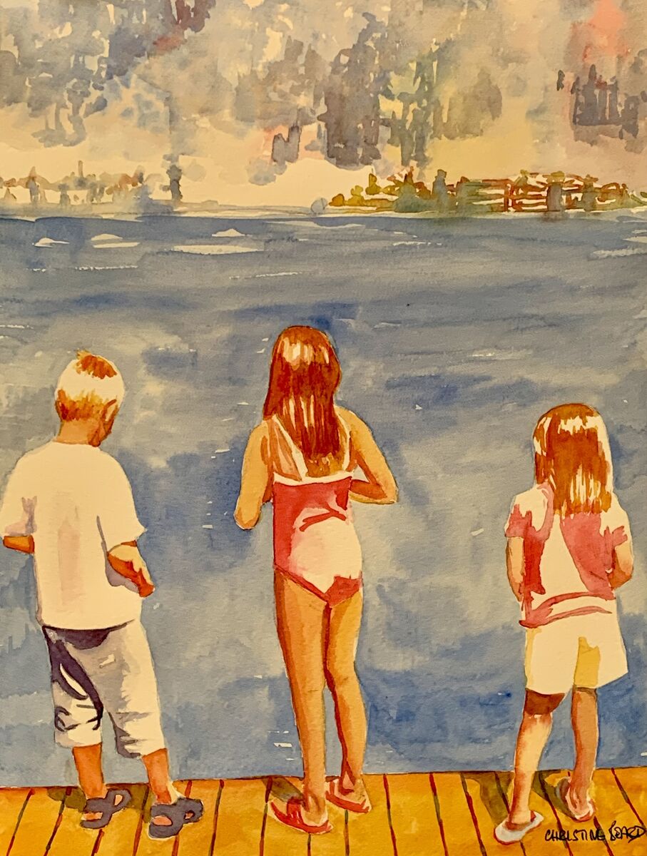 Pals On The Pier By Christine Beard 2023 Watercolour On Paper 31 cm W x 41 cm H