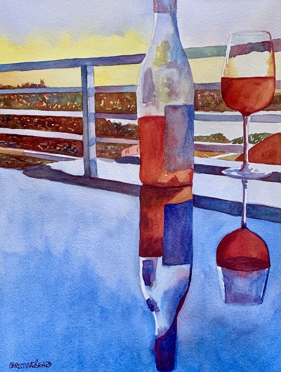 Cheers To The Evening Glow By Christine Beard 2023 Watercolour On Paper 31 cm W x 41 cm H