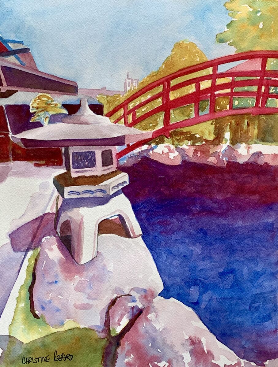 Japanese Garden Elegance By Christine Beard 2023 Watercolour On Paper 31 cm W x 41 cm H
