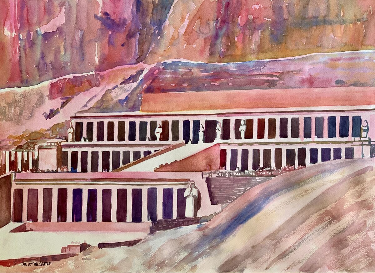 Dawn At Hatshepsut's Temple by Christine Beard 2023 Watercolour On Paper 61 cm W x 46 cm H
