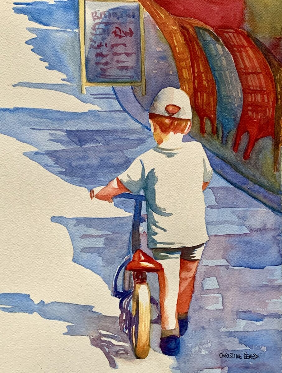 Little Rider's Pitstop By Christine Beard 2023 Watercolour On Paper 31 cm W x 41 cm H