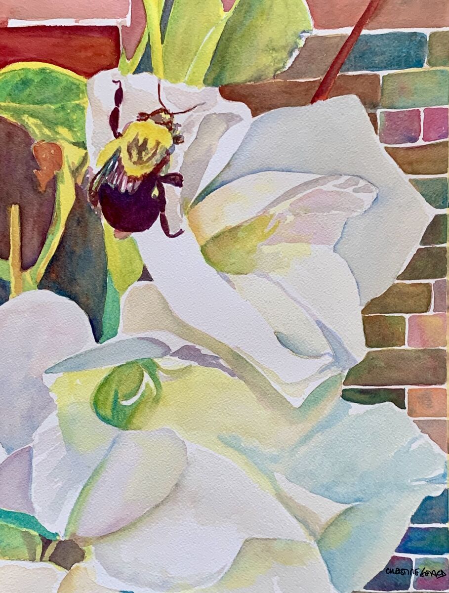 Bee And Blooms By Christine Beard 2023 Watercolour On Paper 31 cm W x 41 cm H