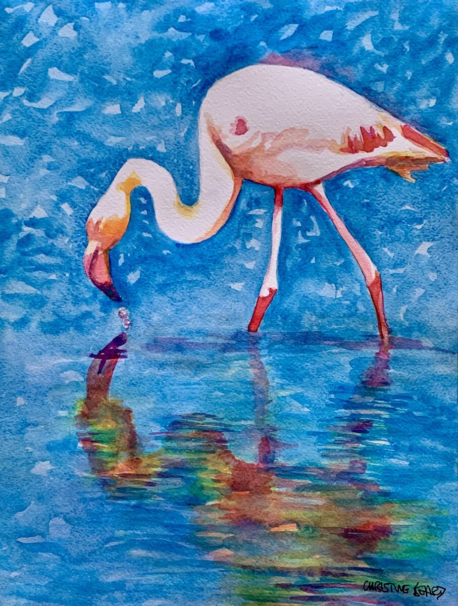 The Flamingo Stroll By Christine Beard 2023 Watercolour On Paper 31 cm W x 41 cm H