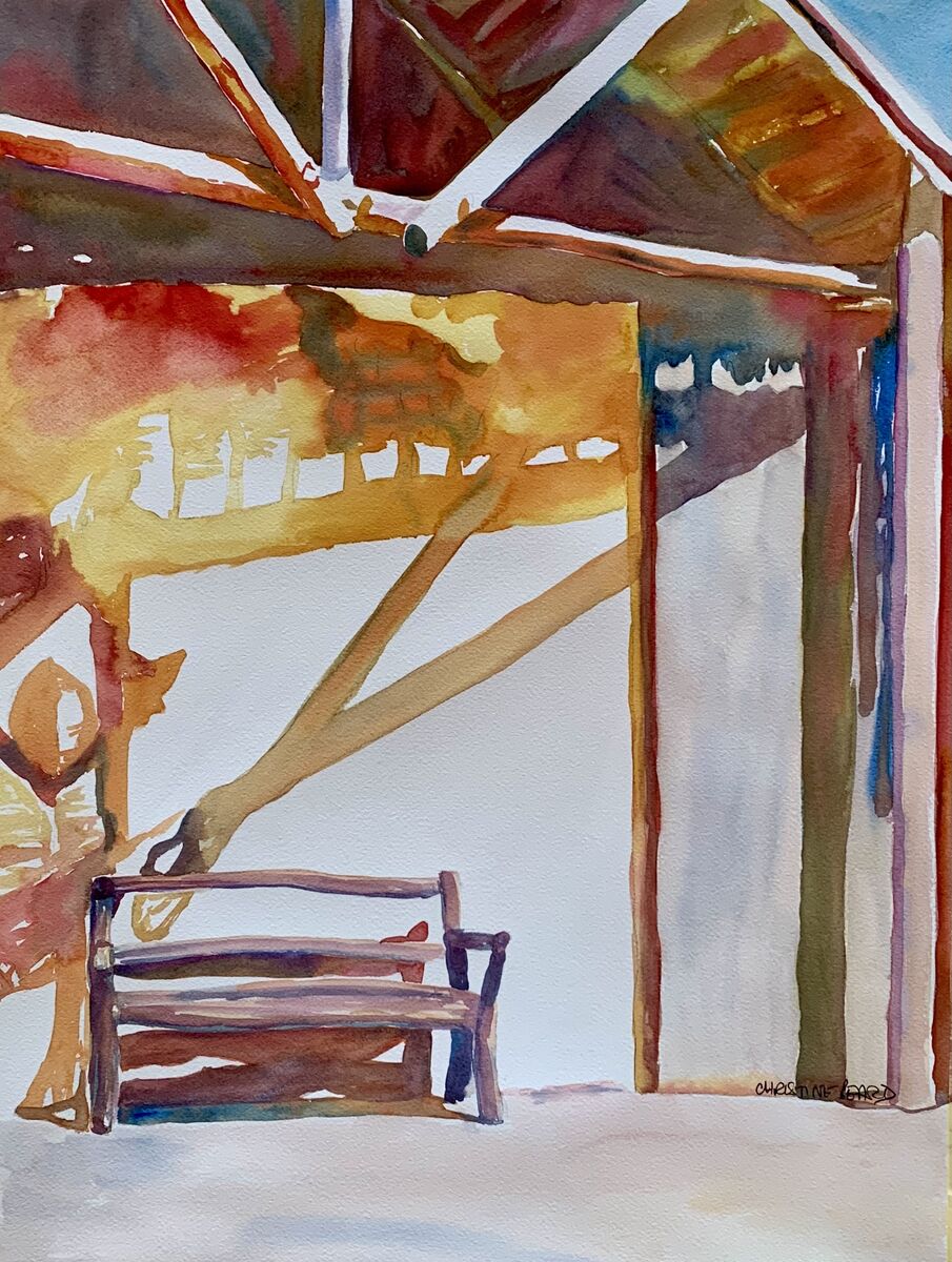 Barnyard Bench By Christine Beard 2023 Watercolour On Paper 46 cm W x 61 cm H