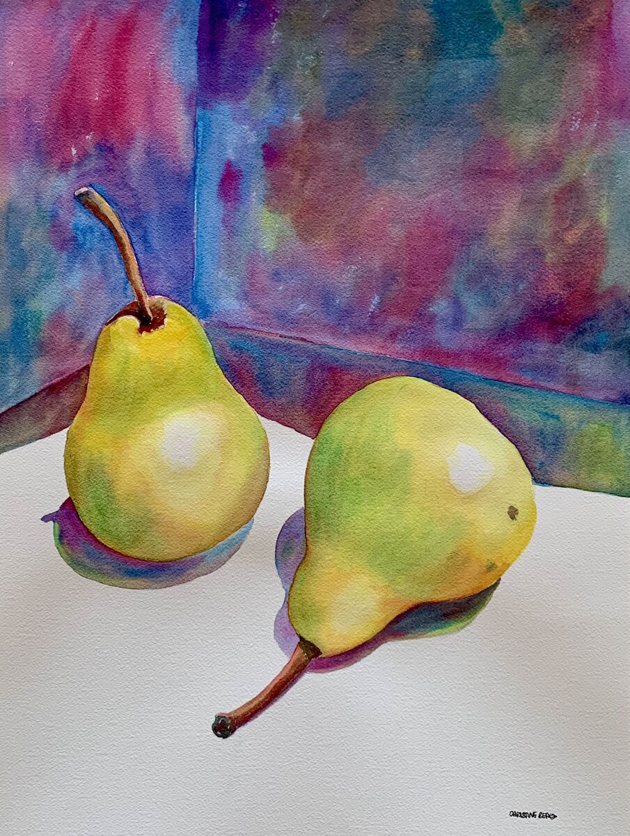 Pearfectly Placed By Christine Beard 2023 Watercolour On Paper 46 cm W x 61 cm H