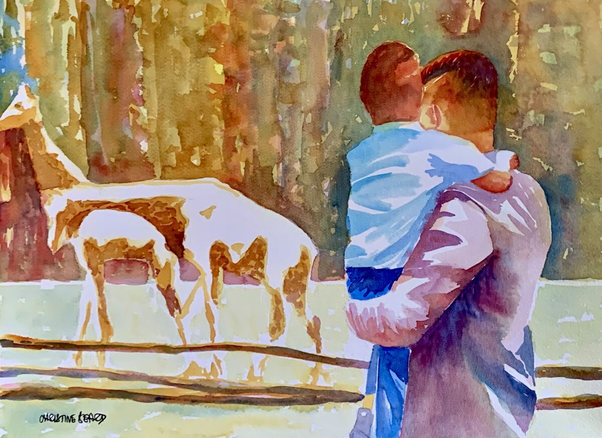 Toddler And The Tallest By Christine Beard 2023 Watercolour On Paper 41 cm W x 31 cm H