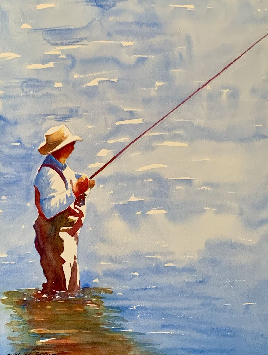 Patient Angling By Christine Beard 2023 Watercolour On Paper 31 cm W x 41 cm H